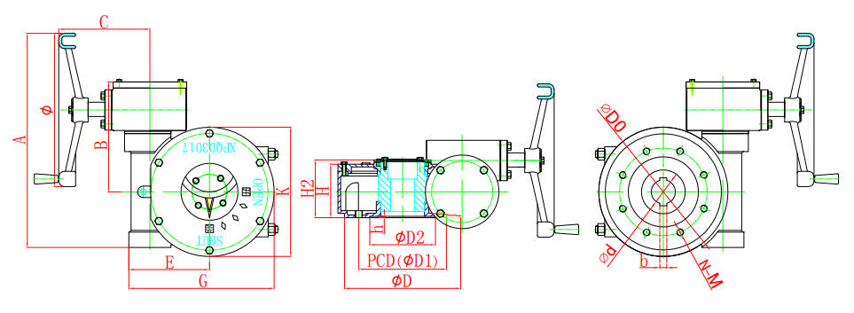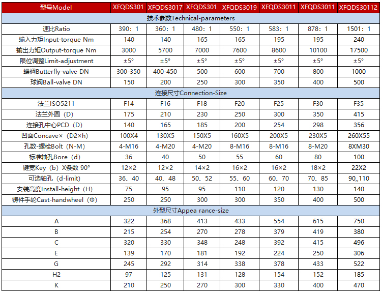 該系列蝸輪箱適用環(huán)境廣、功能全面、形式多樣(有手輪式、手輪帶鎖式等),產(chǎn)品共有7種型號(hào)。