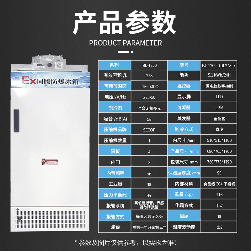 防爆冰箱BL系列機型通過特殊防爆技術加工處理,廣泛應用于國防、科研、石油、化工、醫藥、加工制造、生物等存在ⅡA、ⅡB、IIC級,T1~T4組可燃性氣體、蒸汽與空氣混合形成的易引發爆炸的危險場所,是針對有溫度控制要求場所設計的特種防爆冰箱,防爆冰箱BL系列產品均通過國家防爆電氣產品質量監督檢測中心檢驗,獲得國家防爆電氣設備防爆合格證CNEx22.2564X;其外形美觀,設計合理并具有安裝維修方便等特點,全系列防爆冰箱內部采用壓縮機、微電腦控制、數字顯示,具有噪聲低、性能穩定、操作簡便等優點。深受廣大特需行業客戶喜愛,并以部分錄入特需行業定點采購名錄。